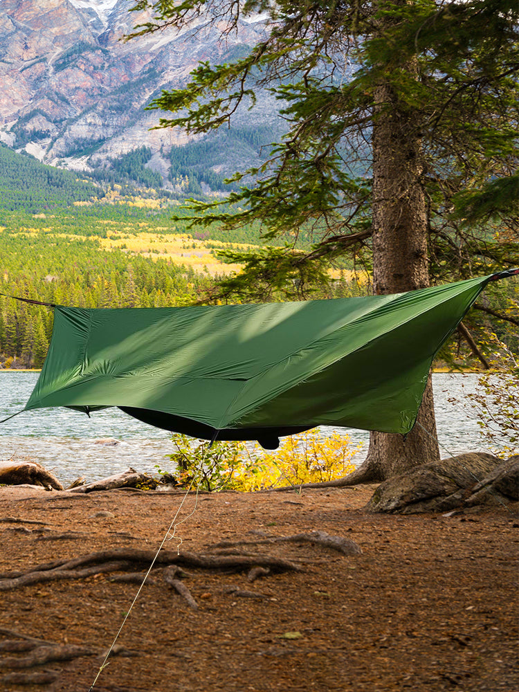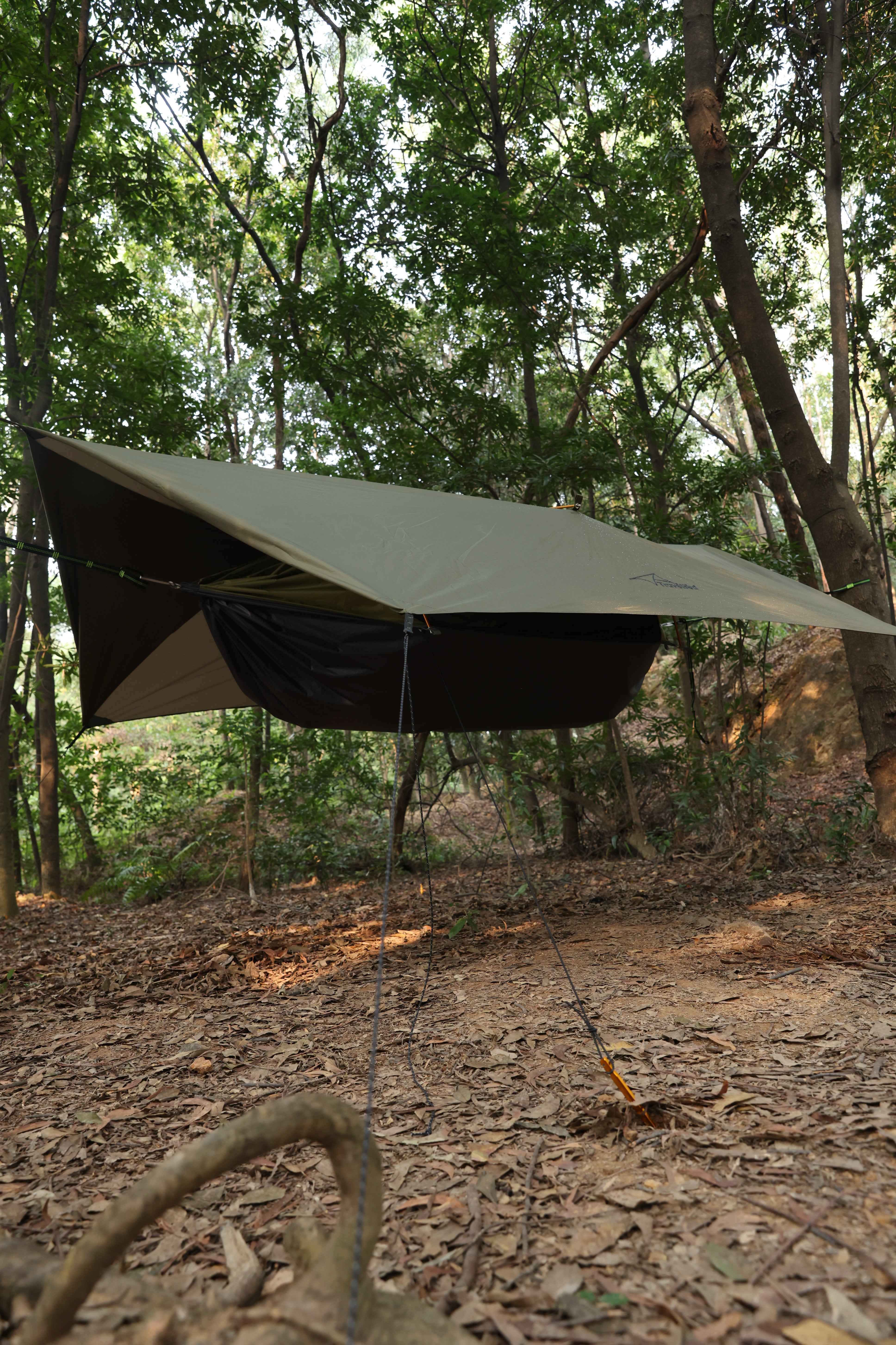 Ultralight Hammock Rain Fly Tarp Camping Tent Waterproof Portable Rain Tarp Canopy with Doors Multifunctional Bushcraft Tarp for Outdoor Backpacking Hiking