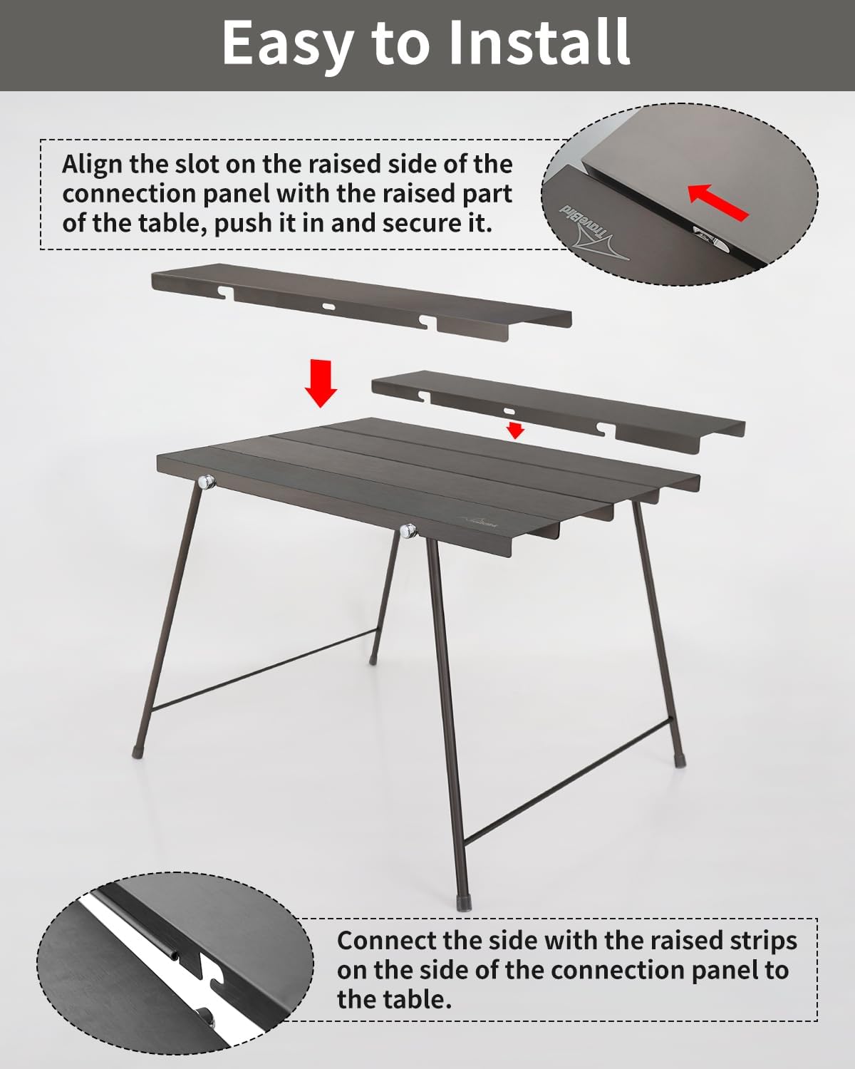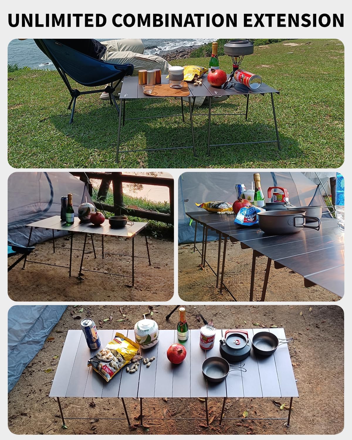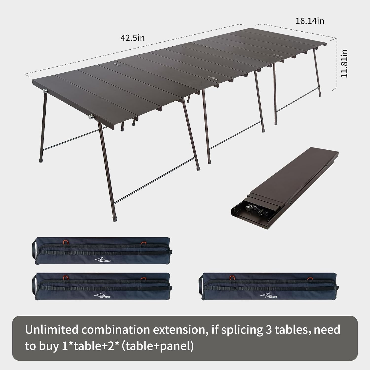 In order to increase the practicability of the table, we have developed a design that can be infinitely extended by multi-piece splicing and combination. Tables can be connected by adding an aluminum frame. It's great for outdoor picnic and BBQ with your friends and family.