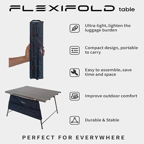 Flexifold table comes with a storage bag, which is convenient to carry around. It can be easily put into a backpack, the outside of the backpack, the tail of the bicycle, motorcycle, no need to worry about heavy luggage anymore.