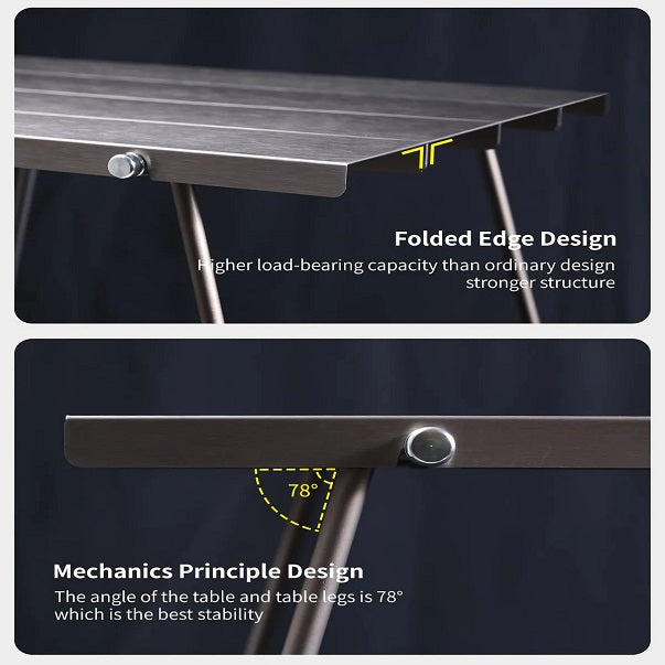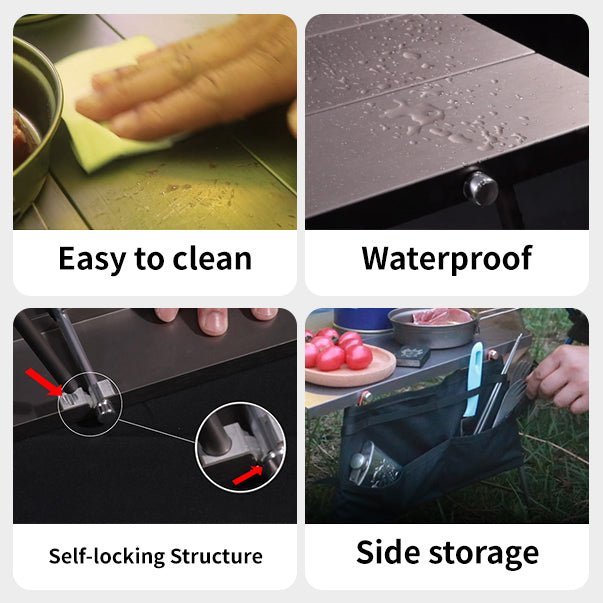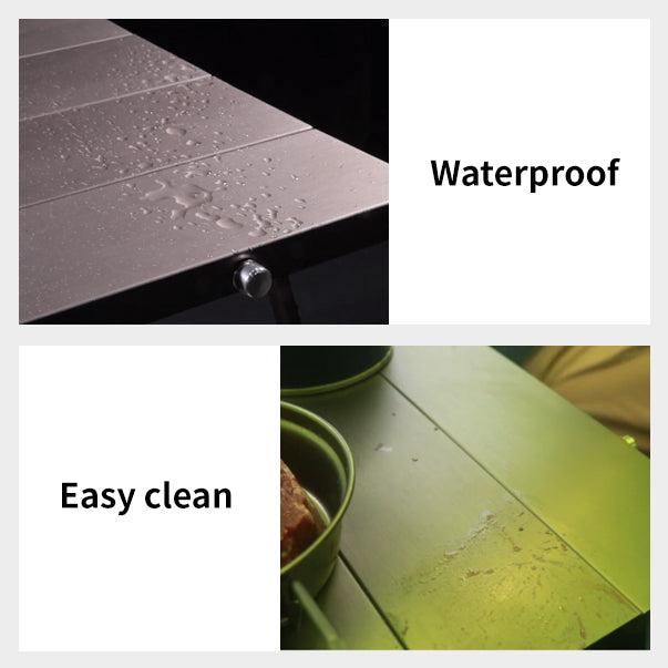 Different from other portable desktops made of wood or nylon, the surface of the aluminum countertop is oxidized, and has the characteristics of waterproof, anti-corrosion, scratch resistance, long service life, and easy cleaning.